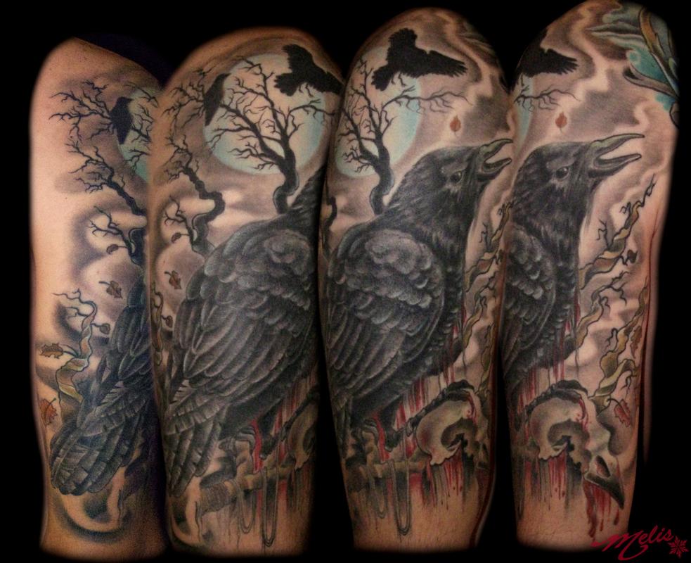 Photo Tattoo Raven On The Skull 18 02 2019 113 Tattoo With Skull And Raven Tattoovalue Net Tattoovalue Net